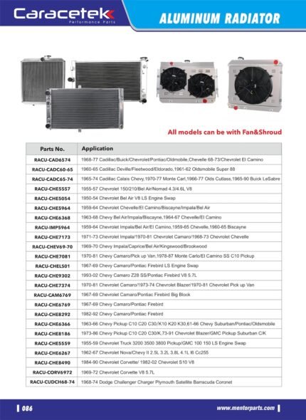 Founded in 2005, Mentor Performance Parts is a pioneer in Hot Rod&Classic Muscle Car performance parts. We have an extensive line of Mopar, Camaro, Firebird, Nova, Impala, Chevy C10, GM truckand Tri-Five Chevy Parts, including:Air & Fuel Delivery, Engine Components,Exhaust, Suspension, Drivetrain, Transmission,Cooling&Heating, Braking Parts,Steering Systems,Ignition & Electrical, Interior&Exterior Parts etc. We are dedicated to providing the high quality and excellent service.